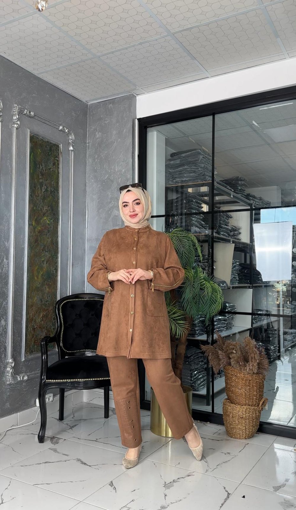 Kumaşı süettir. Önü çıtçıtlıdır. Kollarında fermuar vardır.