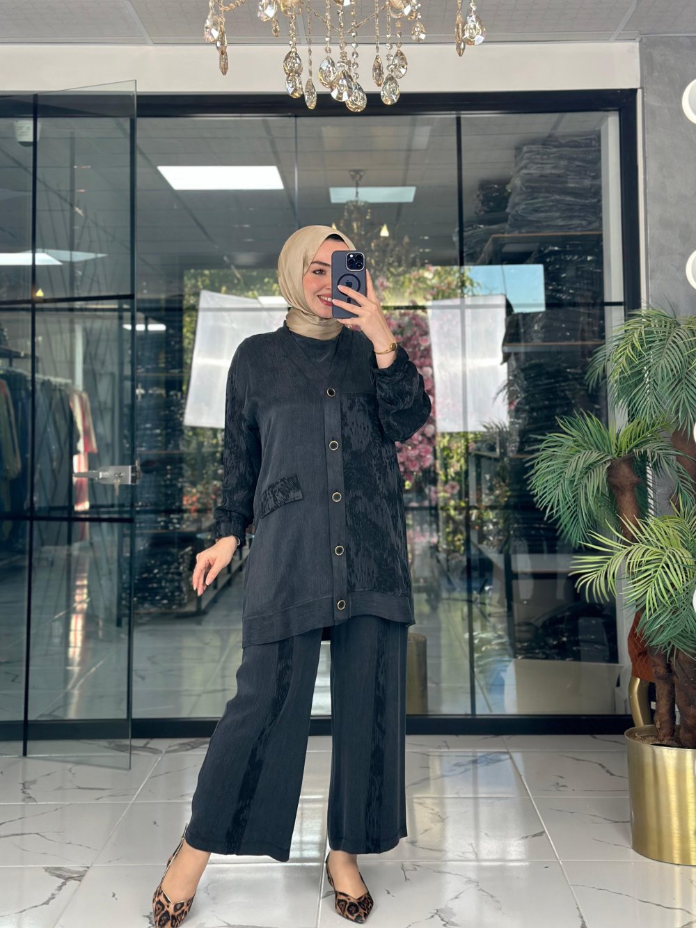 kumaşı ipek qupradır. İçliği sıfır kolludur. Pantolon beli lastiklidir. Cebi yoktur.
