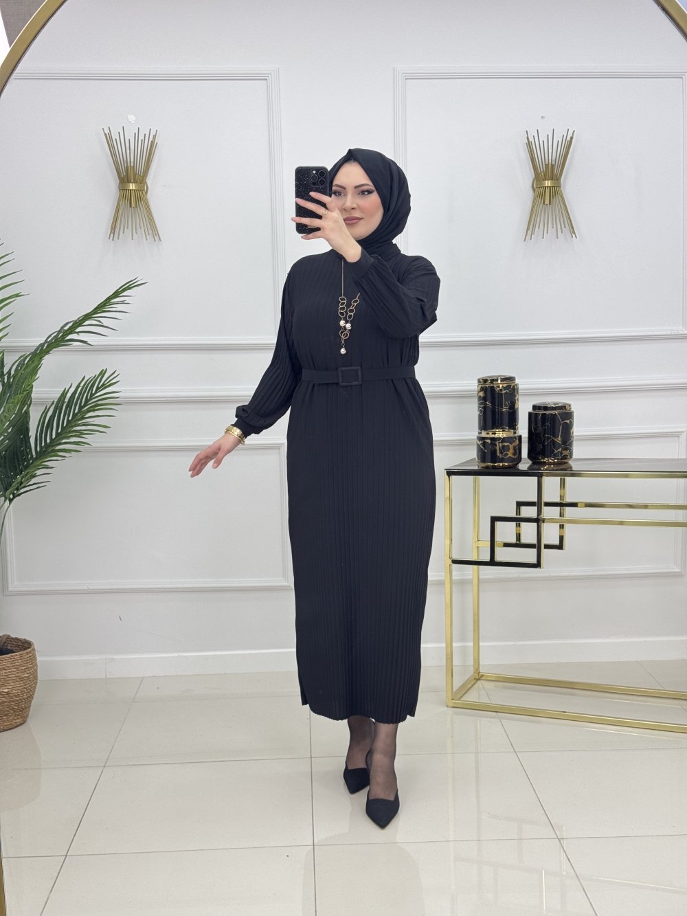 NAZLI PİLİSELİ ELBİSE-SİYAH