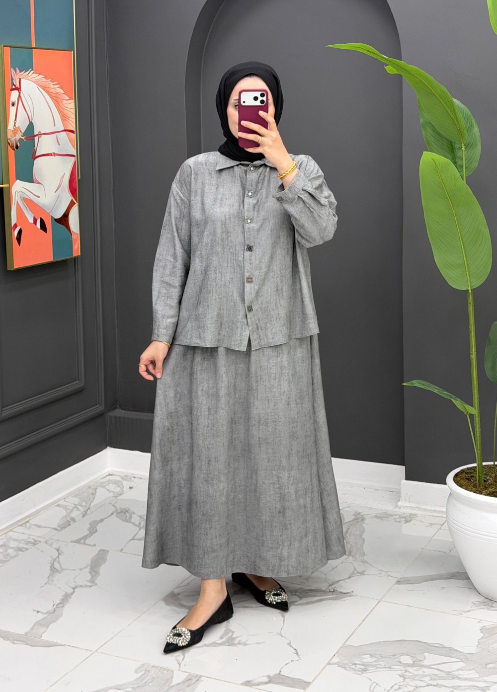 Nehir Etekli Takım - Gri