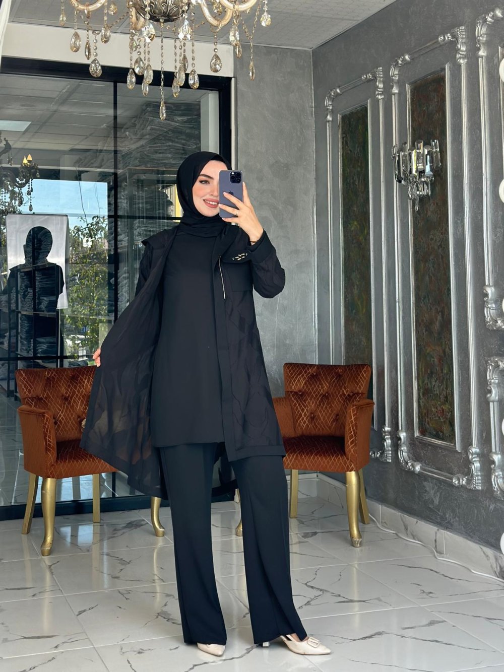 Kumaşı kreptir. Pantolon beli lastiklidir. İçlik Uzun Kollu, Hırka Taş İşleme Mevcuttur.