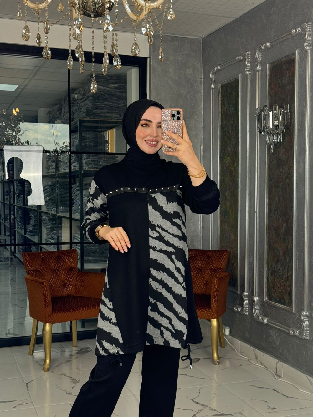 Oysho kumaş,Pantolon Lastikli Ceplidir, Tunik Taş İşleme, Etek Ucu Bağ İpli,