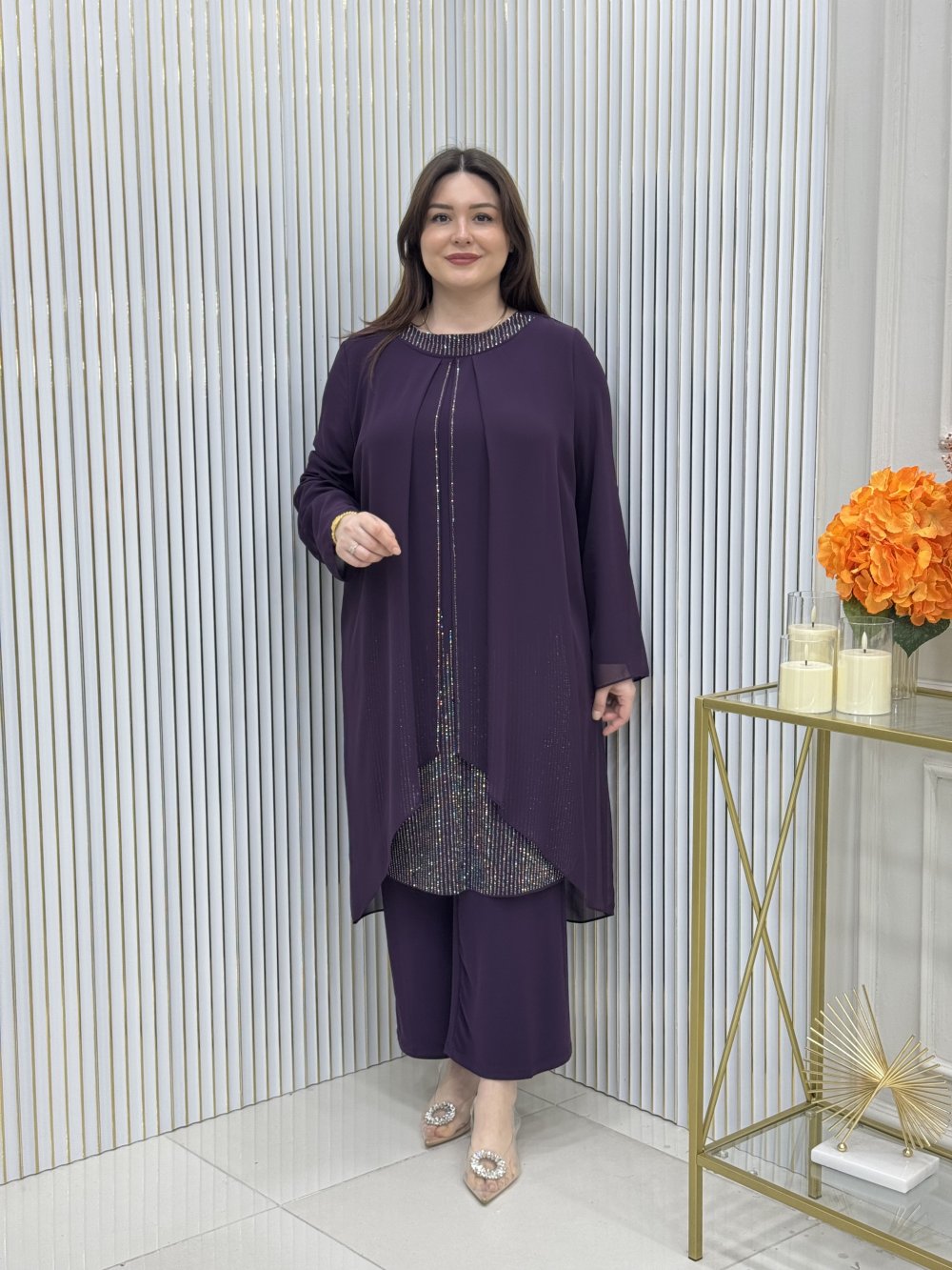 Dışı şifon içi sandy kumaştır.