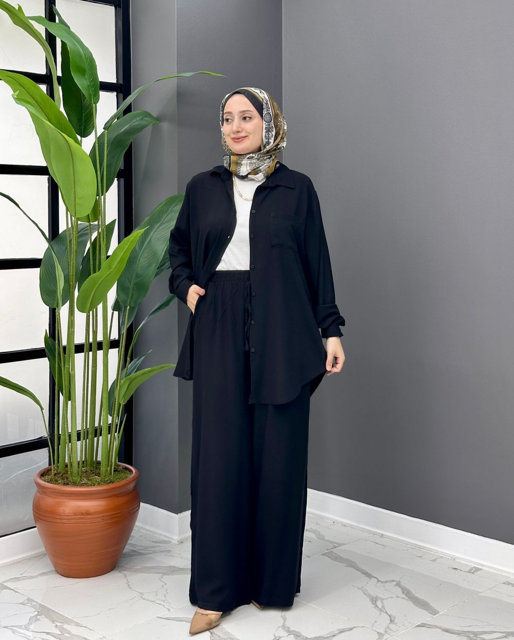 Pamuklu viskon kumaş Tunik boyu 85 cm Pantalon boyu 107 cm