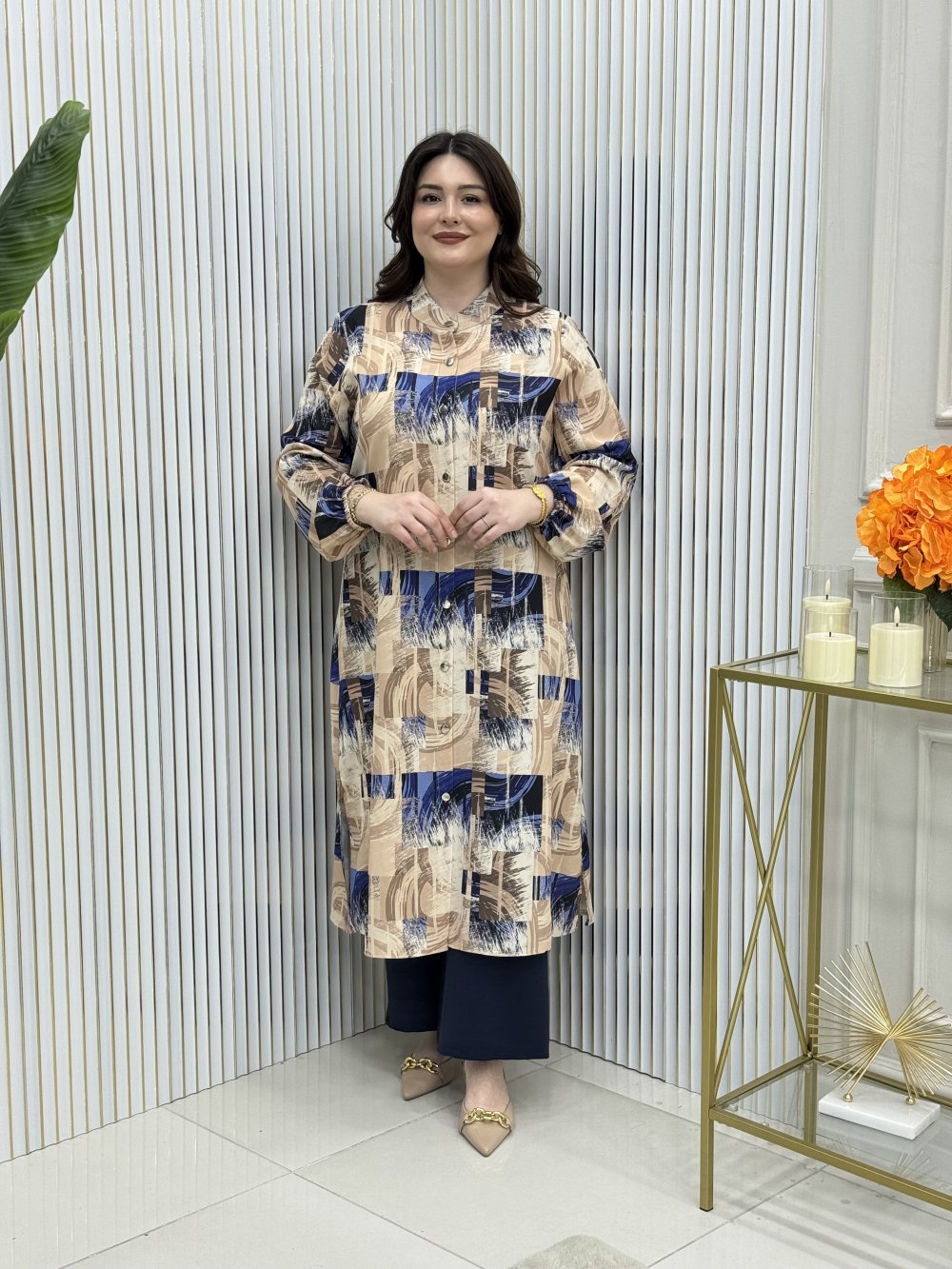 Tunik boydan düğmelidir, kolları lastiklidir.