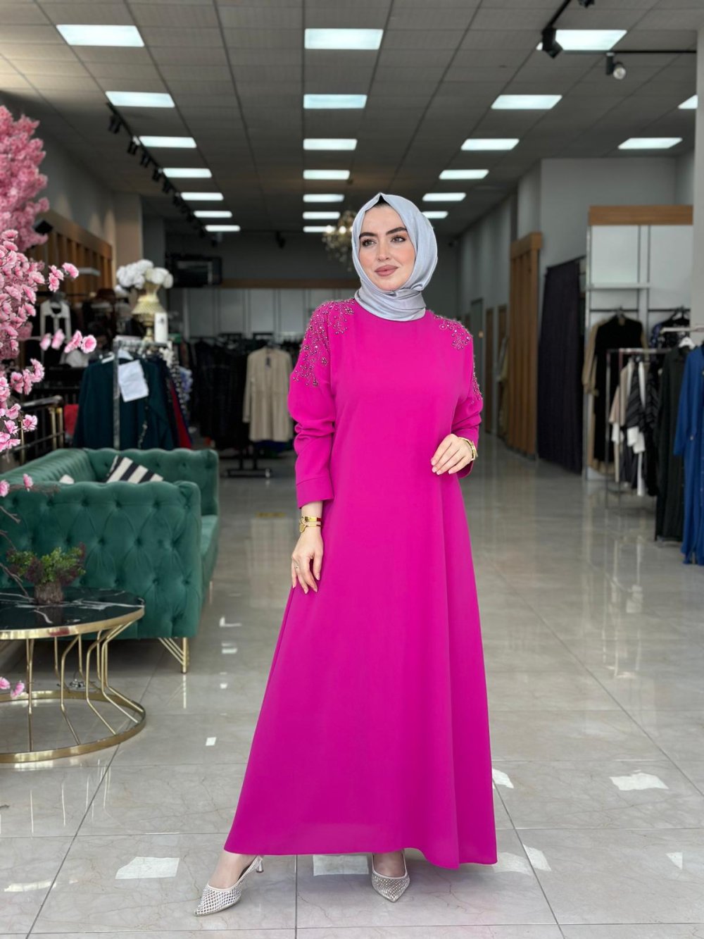 Krep Kumaştır. Omuzlar taş işlemedir.