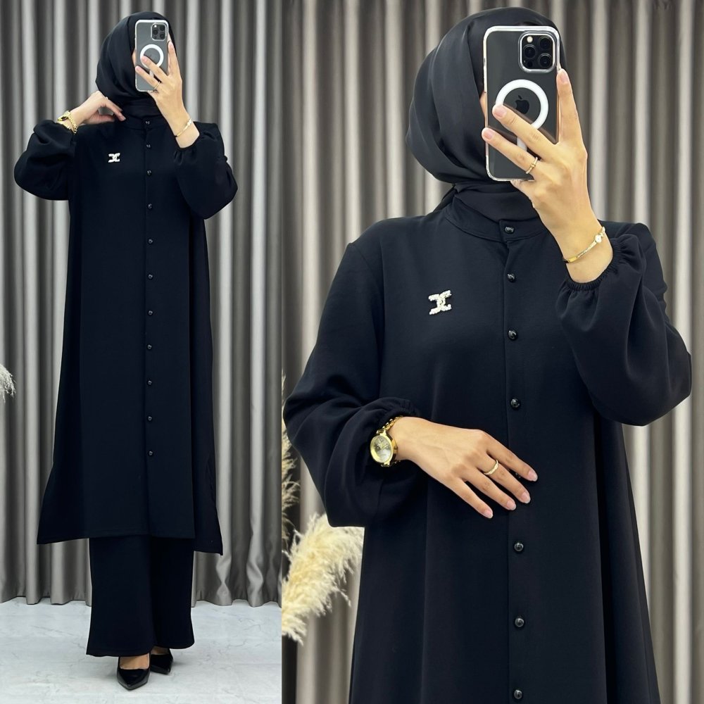 Boydan düğmeli kollar lastikli yanlar yırtmaçlı