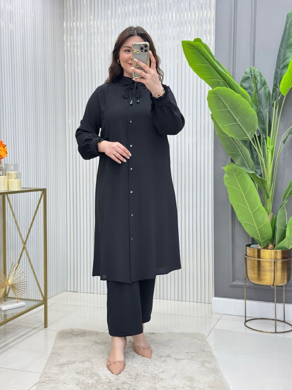 Boydan düğmeli, yaka kısmında taş detaylıdır.