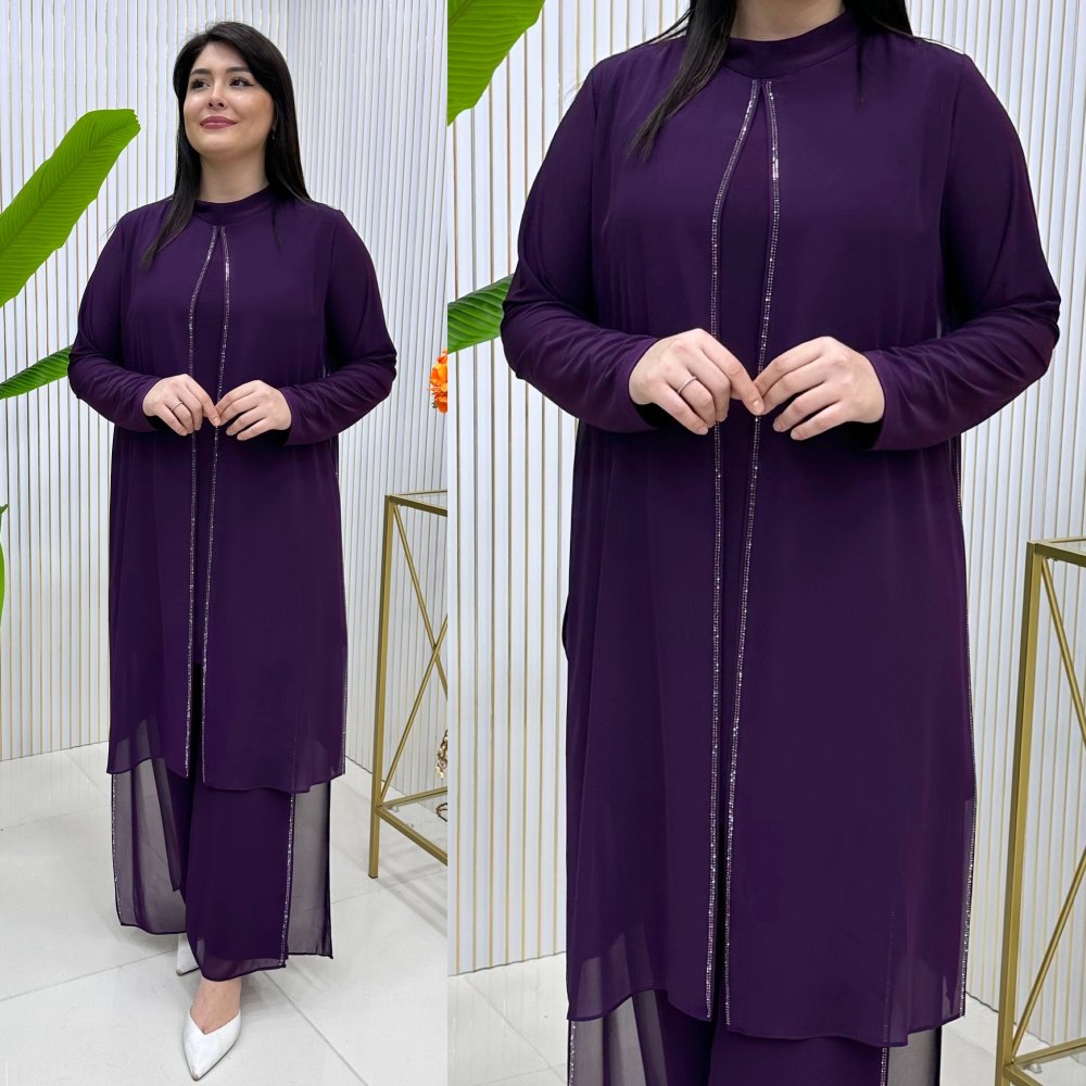 Şifon kısımlarında yırtmaç ve taş detayları vardır.