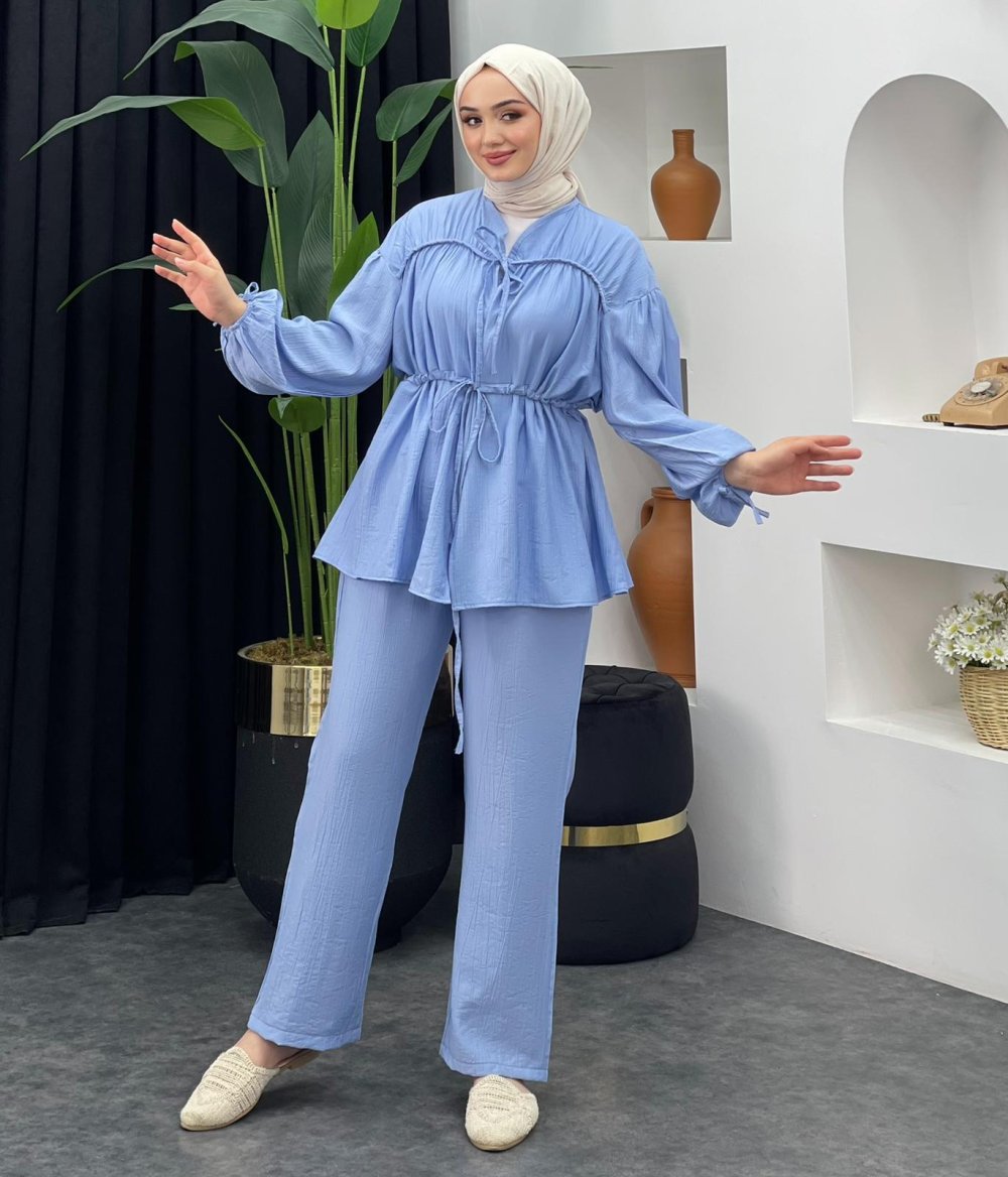 Üst beden bel kısmı ip aracılığı ile büzülüp bele göre ayarlanmaktadır.