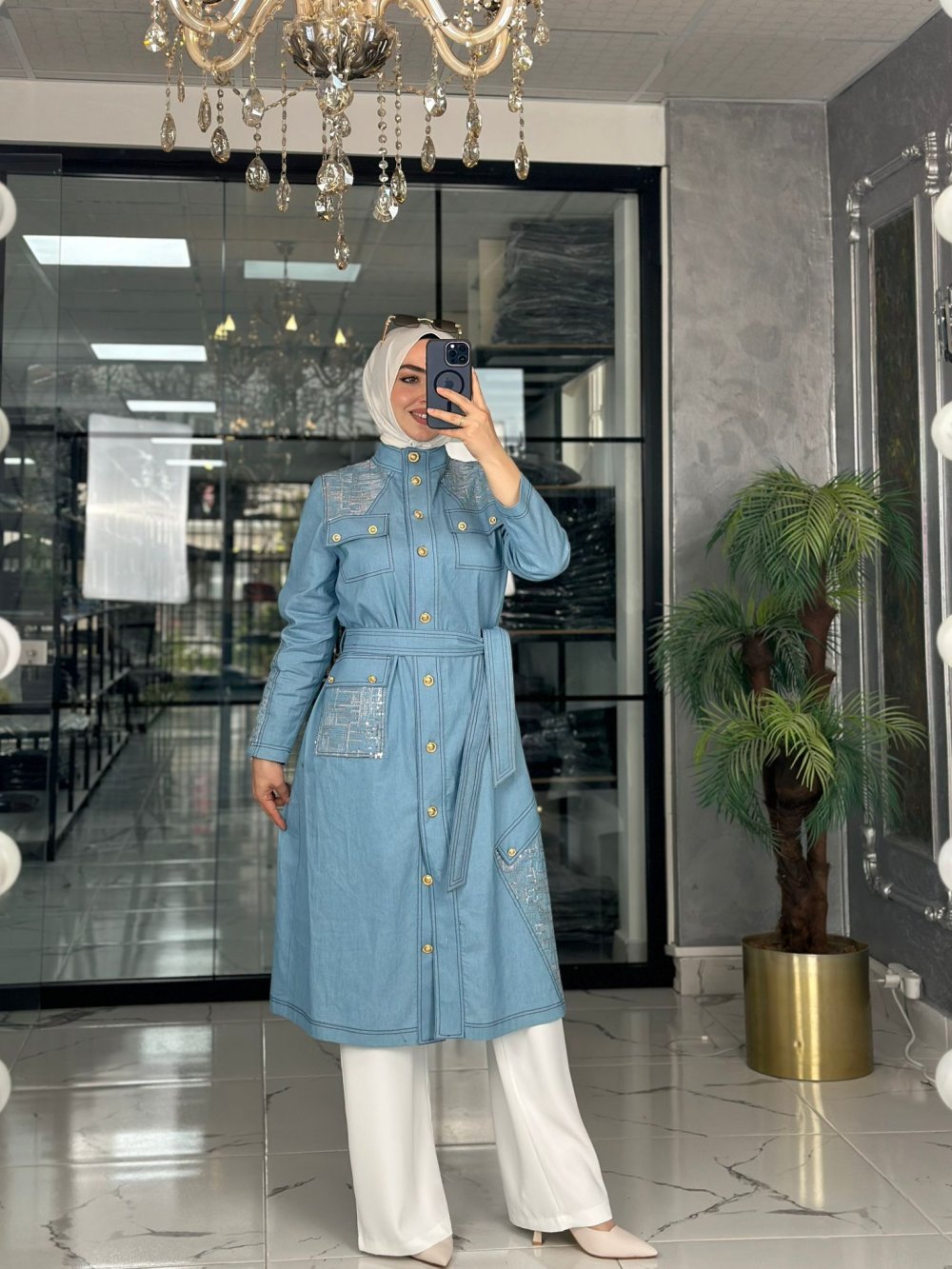 Tencel Kot Kumaştır.Seyyer Kemerli, Metal düğmeli,pul İşlemeli,