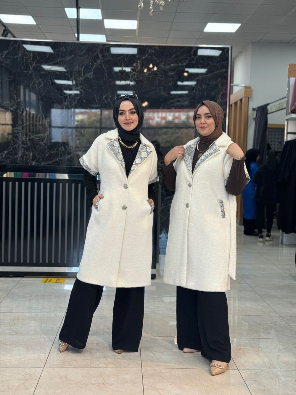 Kumaşı angora kumaştır. Seyyar kemerlidir.