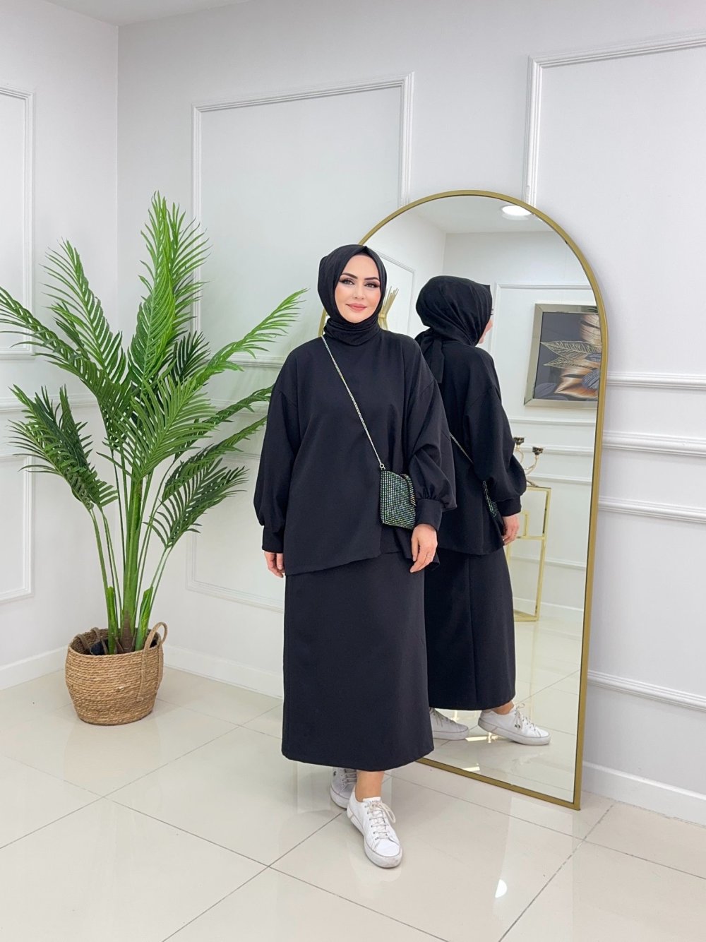 SİMA ETEKLİ TAKIM-SİYAH