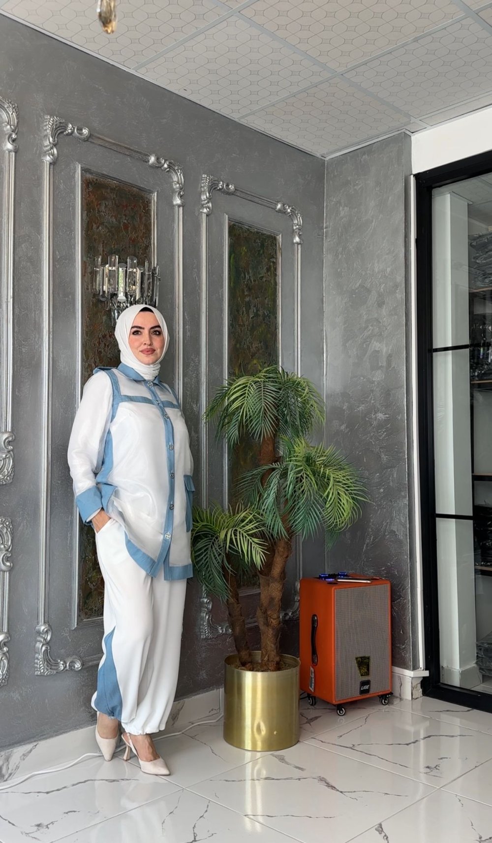 Organze kumaştır. Ceket Düğmeli,Smile Baskı,Pantolon Bel Lastiklidir.