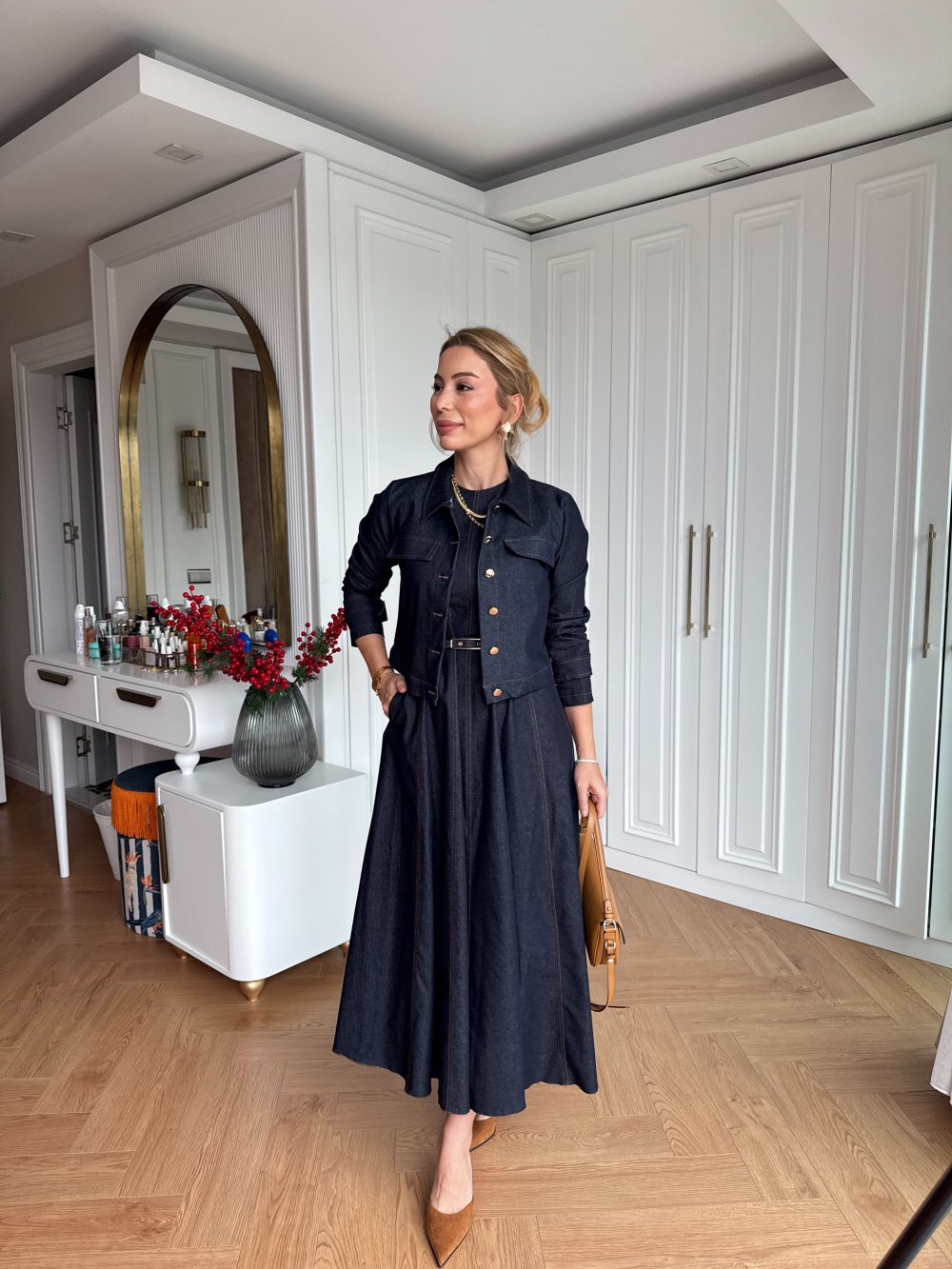 Elbise 1.Sınıf Denim Kumaştır.