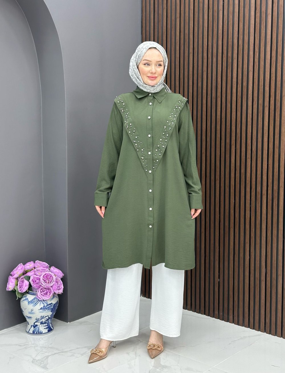 Taşlı Premium Tunik - Haki