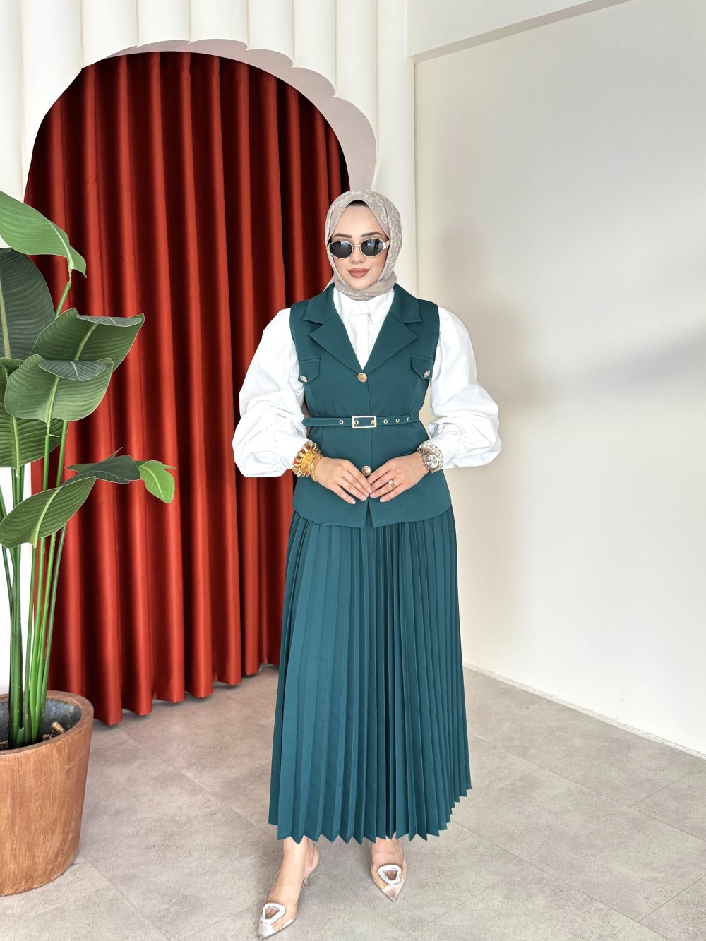 Takım Düğme ve Kemer Detaylıdır.