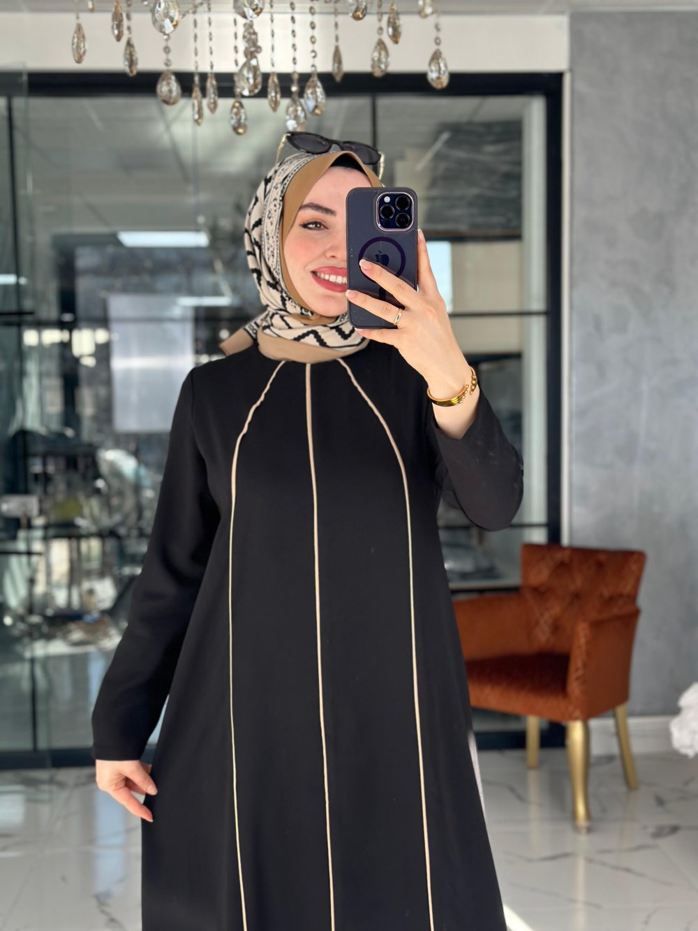 Kumaşı Kumlu Krep, Boydan Biyeli, Arkası Fermuarlıdır.