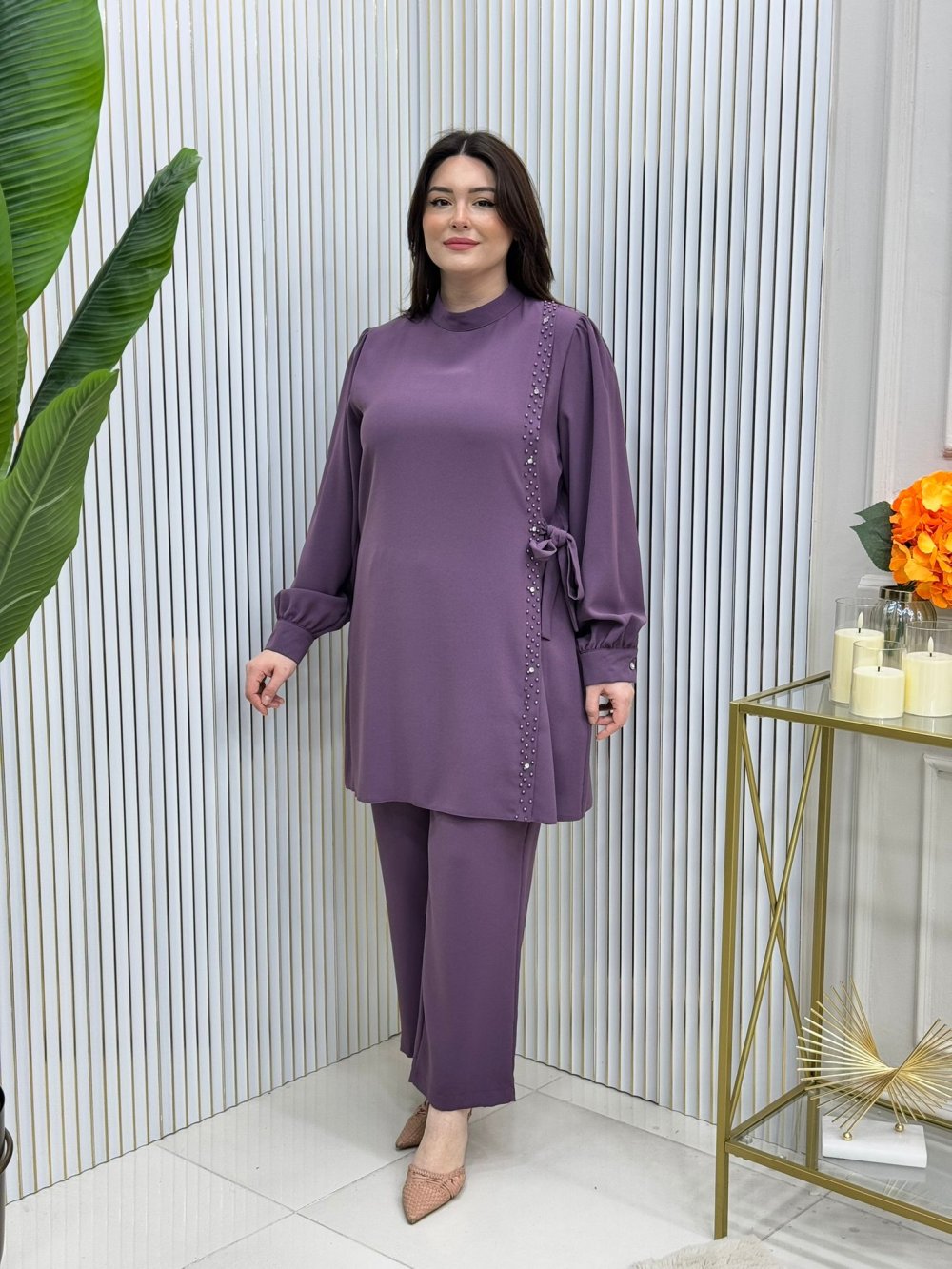 Tunik yandan bağlama detaylıdır.