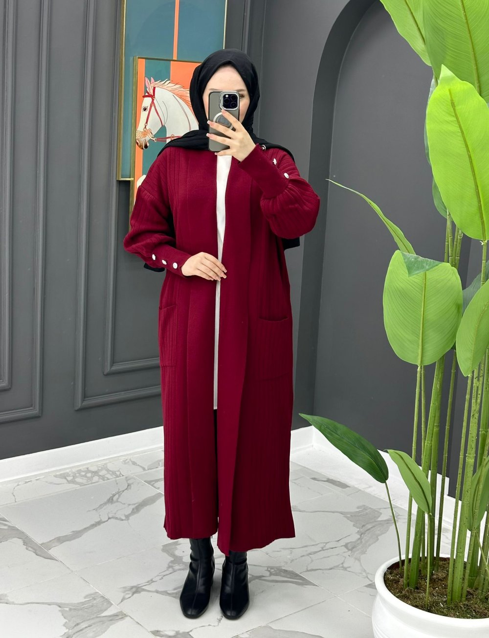Yade Uzun Hırka - Bordo
