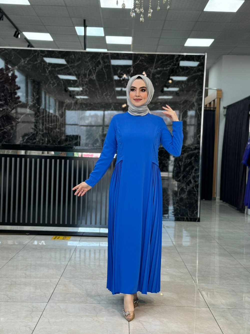Kumaşı kumlu kreptir. Yanları pilelidir.